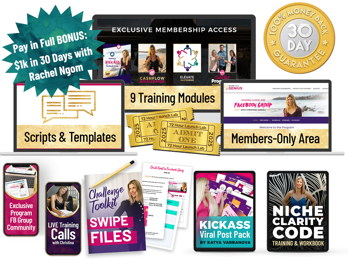You don’t need a big community or huge list to lead a profitable and engaged Facebook group. In fact, the strategies you’ll learn in this program will teach you exactly how to do that, whether your current community is deserted or you’ve got thousands of people already following you.