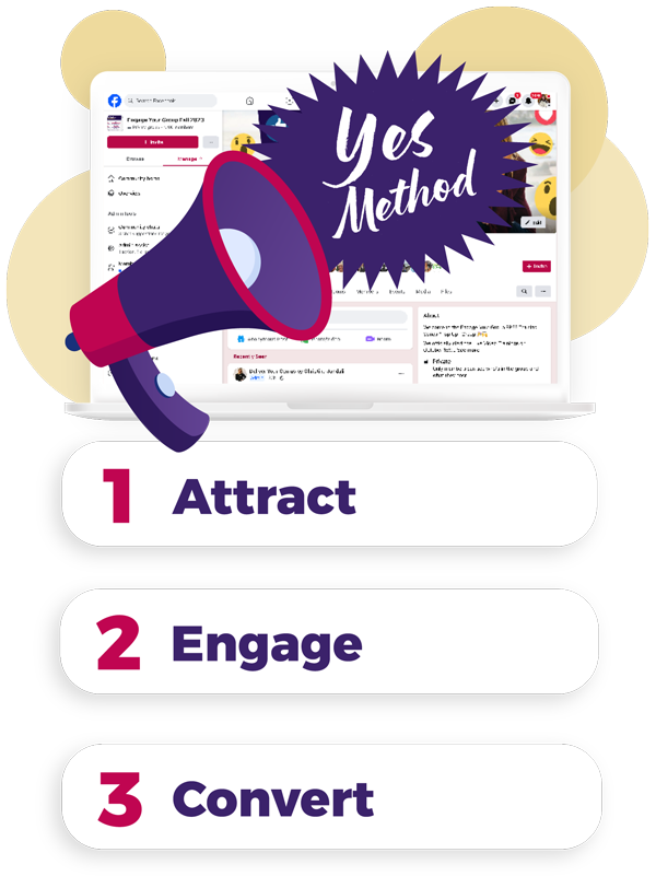 Enter my 3-Step YES! Method™ for creating, growing and monetizing a super-engaged free Facebook group
