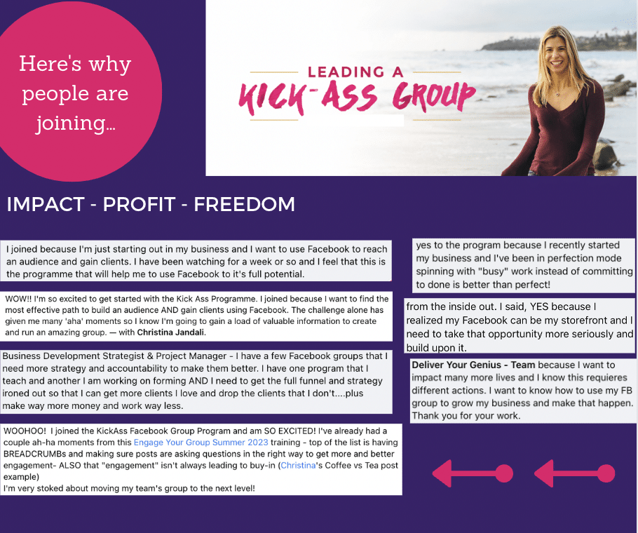 Check this image out with some of the reasons people bought my Leading a KickAss Facebook Group Program: